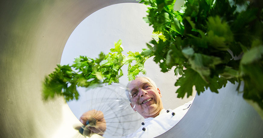 „Es ist faszinierend, wie vielfältig die Verwendungsmöglichkeiten von Kräutern sind – es macht mir auch nach all den Jahren noch immer Freude, damit kreativ zu experimentieren“, so Siegi Augscheller. Der Küchenchef sammelt dabei selbst zahlreiche Wildkräuter wie Brennnessel, Guter Heinrich, Giersch, Spitzwegerich oder Schafgarbe und integriert sie als festen Bestandteil in seine Gerichte.