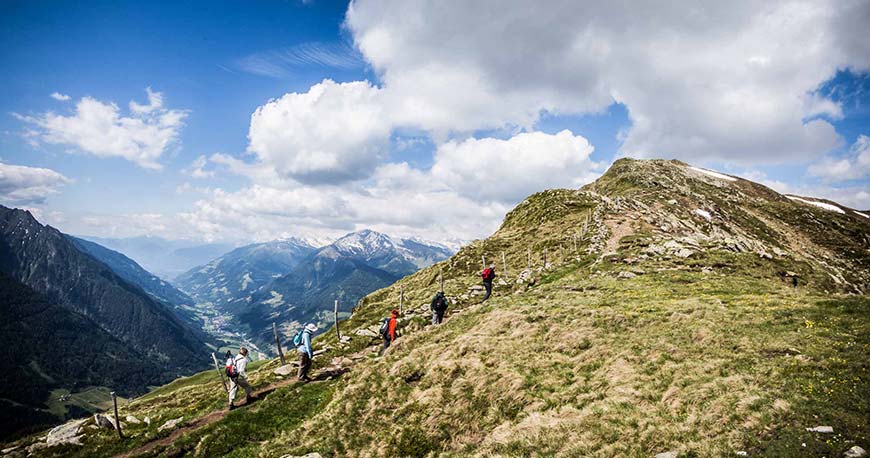 Siegi Augscheller: „Der Passeirer Höhenweg ist ganz unbestritten einer der schönsten Wanderwege in ganz Südtirol!“ Am besten startet man an der obersten Kehre der Jaufenpassstraße, der Römerkehre, die mit dem Bus erreichbar ist. Von dort wandert man zur Flecknerhütte und zum Glaitner Joch, wo man die herrliche Aussicht auf die Ötztaler, Stubaier, Zillertaler und Sarnstaler Alpen genießt. Weiter geht’s über das Schlattacher Joch und vorbei am Übelsee zur Hochalm, wo man sich bei einer Einkehr stärken kann. Vorbei an der Eggergrubalm führt der Wanderweg hinab nach Stuls, die Rückkehr wird mit dem Bus angetreten.